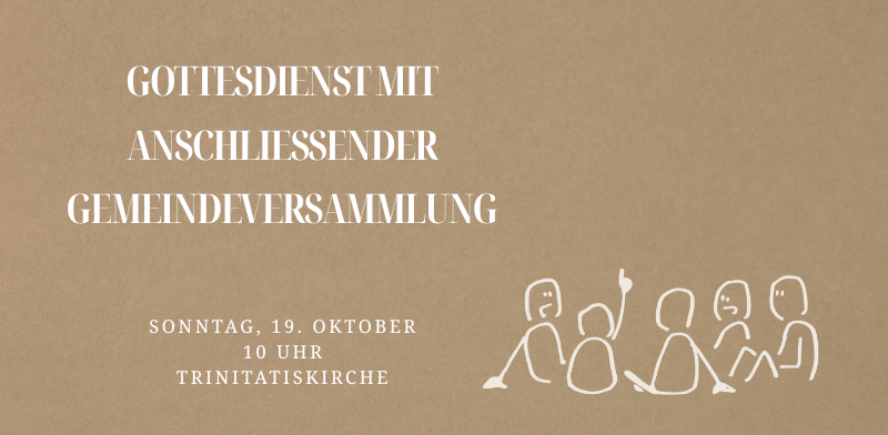 Nach dem Gottesdienst am 19. Oktober in unserer Trinitatiskirche laden wir Sie herzlich zur Gemeindeversammlung ein.