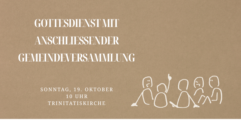Nach dem Gottesdienst am 19. Oktober in unserer Trinitatiskirche laden wir Sie herzlich zur Gemeindeversammlung ein.