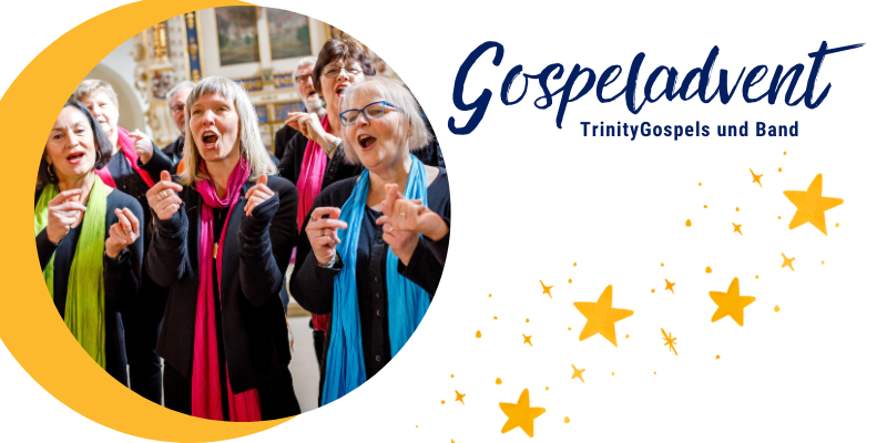 Zum traditionellen „Gospeladvent“ am Samstag, dem 13. Dezember, um 17:00 Uhr in der Trinitatiskirche laden die „TrinityGospels“ sehr herzlich ein. Mit spürbarer Begeisterung für die Gospelmusik werden deutsch- und englischsprachige Advents- und Weihnachtslieder zu hören sein. Songs wie „Sing with the angels“, „Tell me, tell me“ und „Glory Halleluja to the New-born King“ erzählen von der weihnachtlichen Freude der Geburt Jesu und laden ein, dies immer wieder neu mit Klang und Rhythmus zu feiern.
