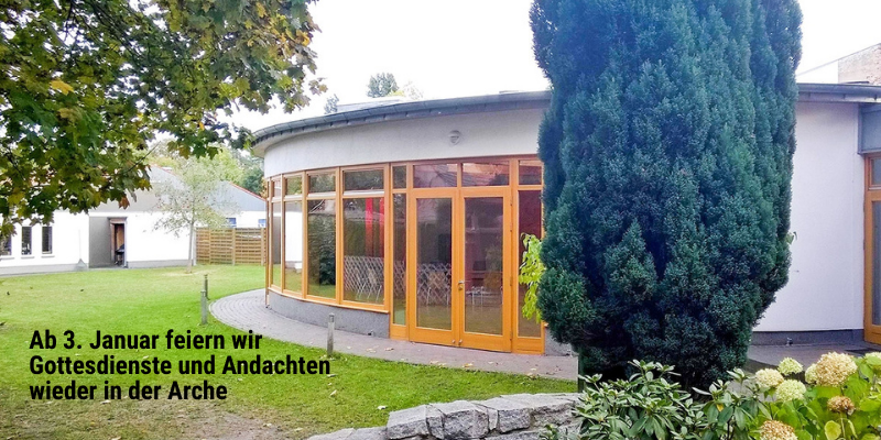 Der Gemeindekirchenrat hat deshalb festgelegt, dass ab 3. Januar bis in die Osterwoche die Wochenschlussandachten und Gottesdienste in der Arche stattfinden werden.