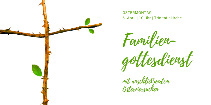 Herzliche Einladung zum Fest der Auferstehung im Familiengottesdienst. Wir feiern diesen am Ostermontag um 10:00 Uhr in der Trinitatiskirche.