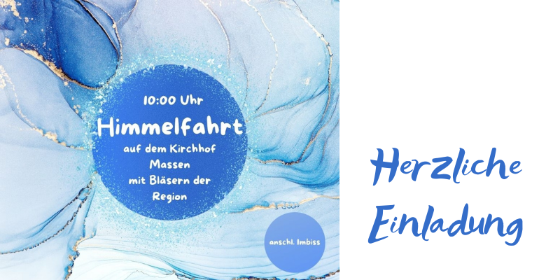 Zum regionalen Gottesdienst mit Bläsern der Region am Himmelfahrtstag, dem 14. Mai, wird in diesem Jahr auf den Kirchhof nach Massen eingeladen (bei Regen in die Kirche). Beginn ist um 10:00 Uhr. Im Anschluss an den Gottesdienst gibt es einen Imbiss.