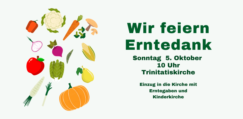 Am 5. Oktober um 10:00 Uhr feiern wir einen Dankgottesdienst zum Erntedankfest.